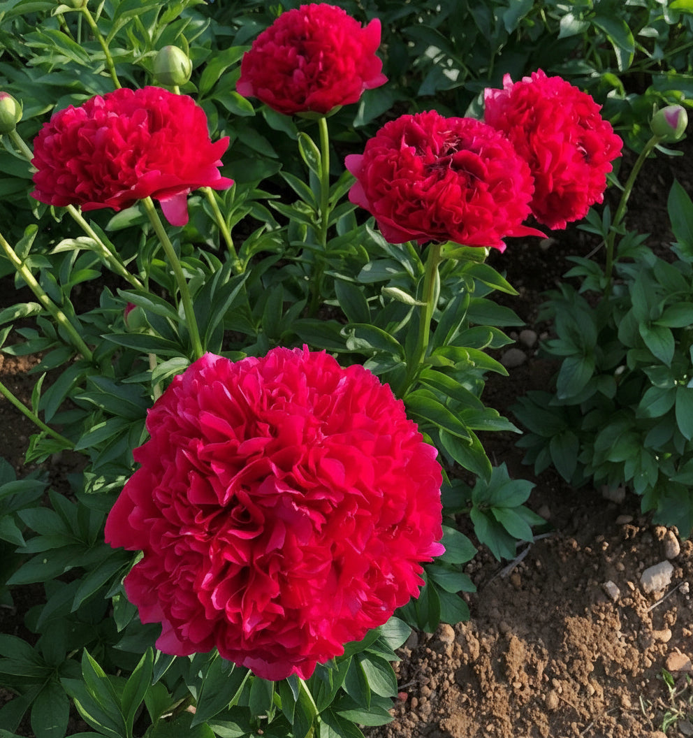 Paeonia hybrid ‘Command Performance’ is a remarkable herbaceous perennial admired for its massive, fragrant double blooms in a bold, vivid red. Its rich, dark green foliage creates a perfect backdrop, making the flowers stand out with striking intensity. Growing to about 60 cm in height, this mid-season bloomer produces an impressive display from late spring to early summer. Known for having some of the largest flowers among peonies, Command Performance thrives in gardens, fields, and even greenhouse settings. With consistent care, it delivers reliable growth and unforgettable, show-stopping color year after year.