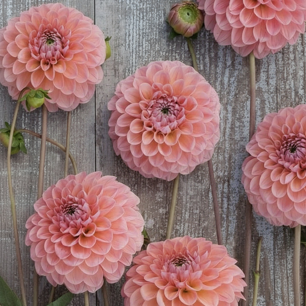 This distinctive dahlia showcases a stunning blend of warm pink and peach tones, accented by subtle hints of purple on the petals and at the center. Its perfectly shaped 2–4" ball blooms are both elegant and abundant, making it a prolific grower that provides an endless supply of gorgeous cut flowers all season long.