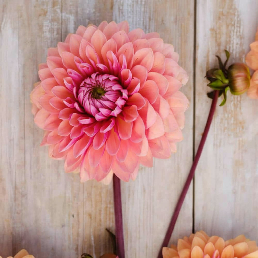 A beautiful harmony of color defines this dahlia, with peach-pink petals blending seamlessly into a soft lilac center. The 5" blooms rest atop strong, sturdy stems and appear continuously from summer until frost, adding a touch of refined elegance to any garden or outdoor space.